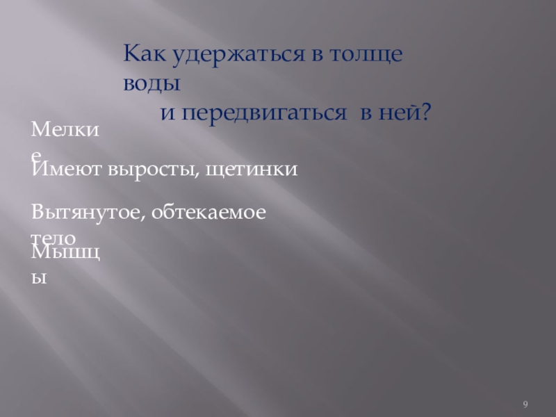 Слайд 9Как удержаться в толще воды