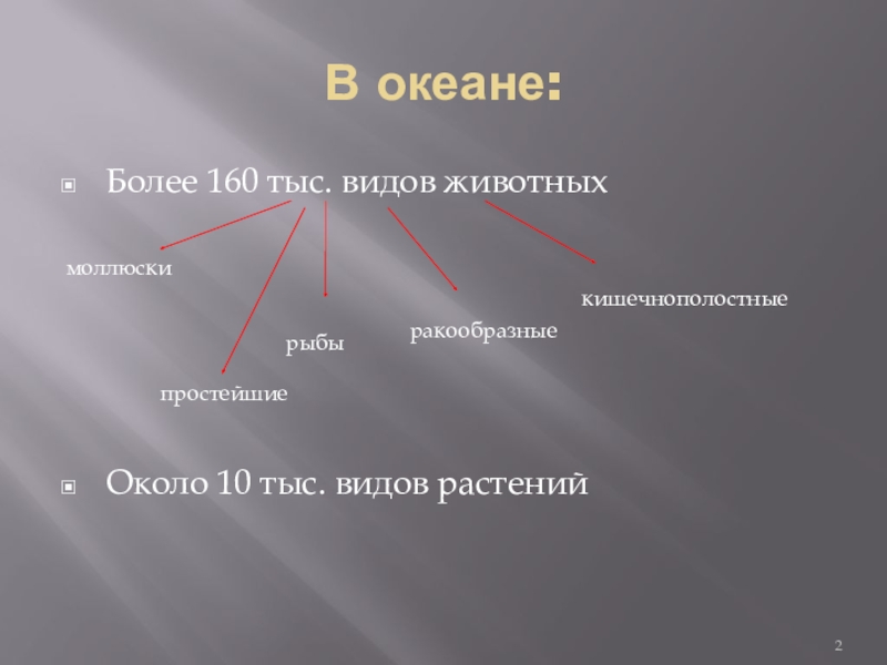 В океане:Более 160 тыс. видов животныхмоллюски