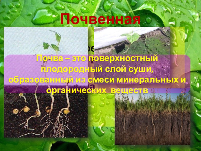 – это поверхностный плодородный слой суши, образованный из смеси минеральных и органических веществ