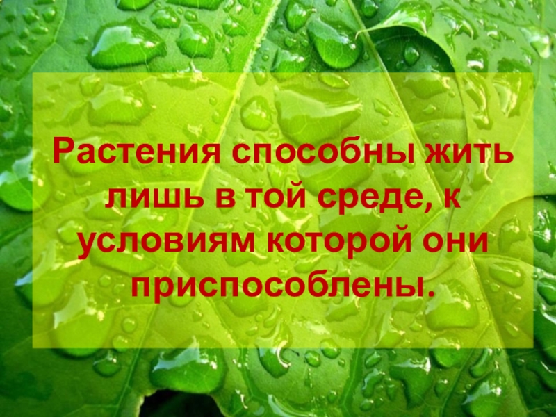 Растения способны жить лишь в той среде, к условиям которой они приспособлены.
