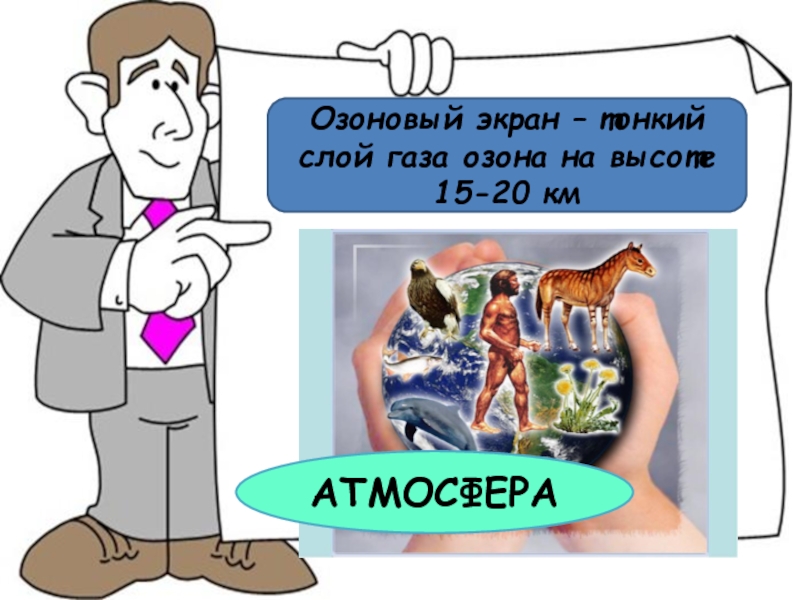 Слайд 9Озоновый экран – тонкий слой газа озона на высоте 15-20 км