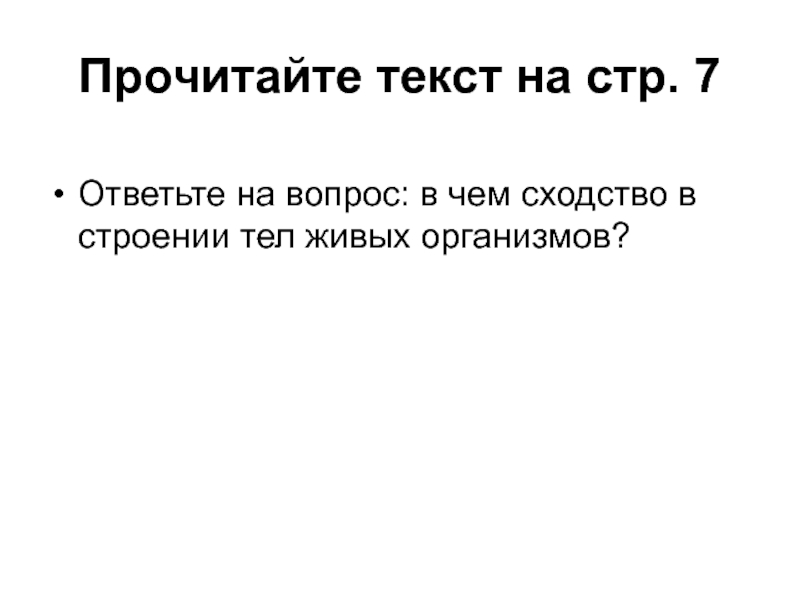 Прочитайте текст на стр. 7Ответьте на вопрос: в чем сходство в строении тел живых организмов?