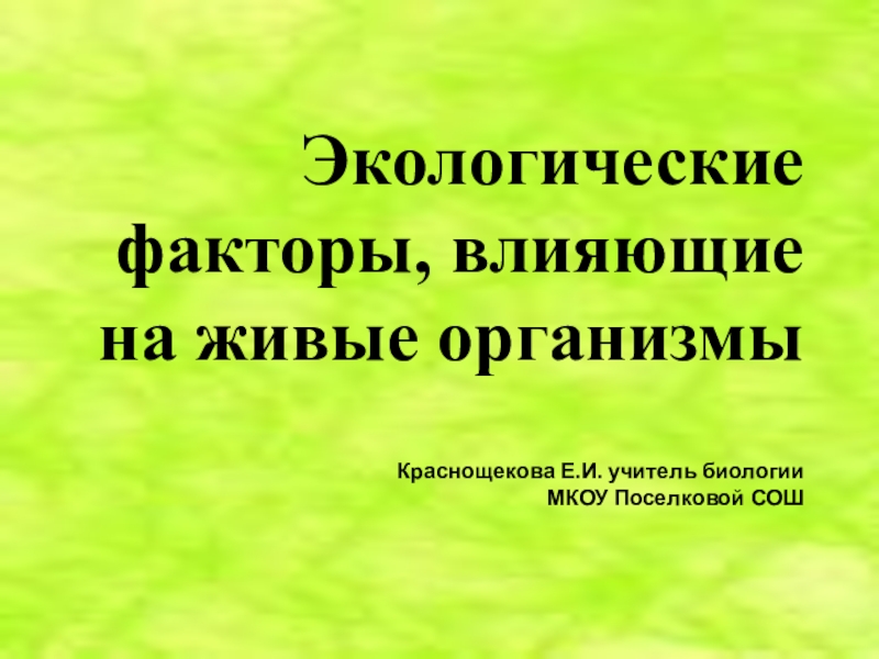 Слайд 1Экологические факторы, влияющие на живые организмы Краснощекова Е.И. учитель биологии МКОУ Поселковой
