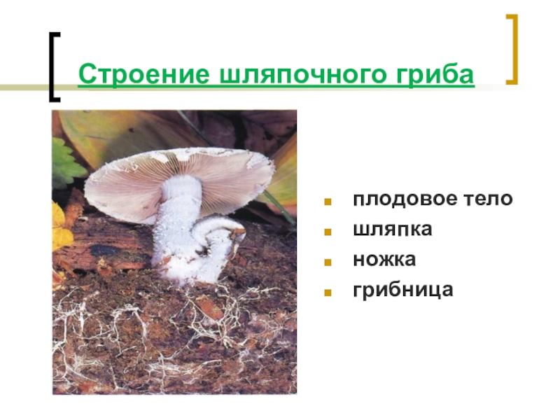 Строение шляпочного гриба плодовое телошляпканожкагрибница