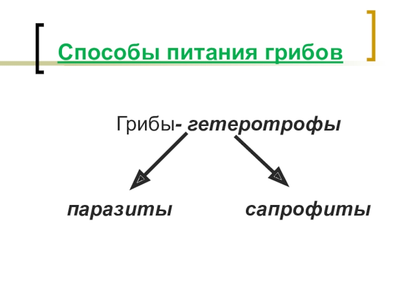 Способы питания грибов      Грибы- гетеротрофы	паразиты       сапрофиты