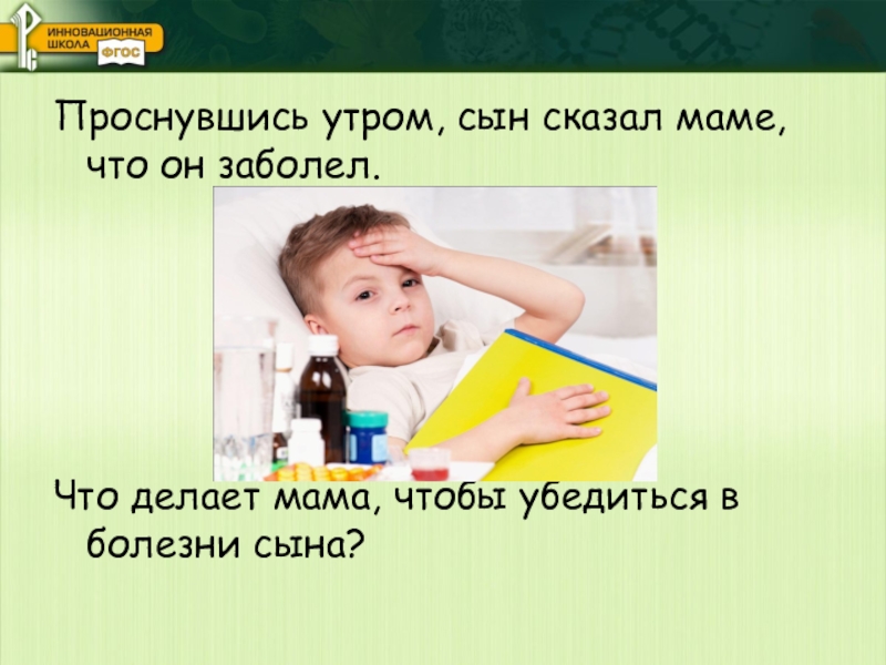 Проснувшись утром, сын сказал маме, что он заболел. Что делает мама, чтобы убедиться в болезни сына?