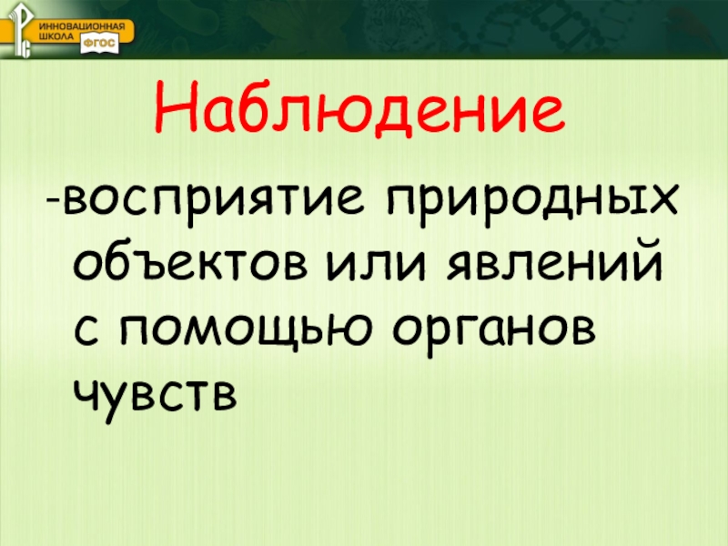 Наблюдение -восприятие природных объектов или явлений с помощью органов чувств
