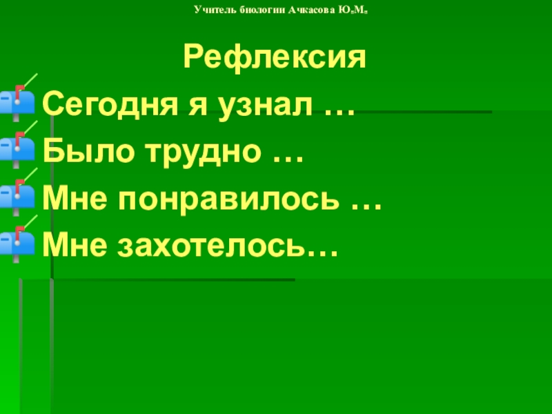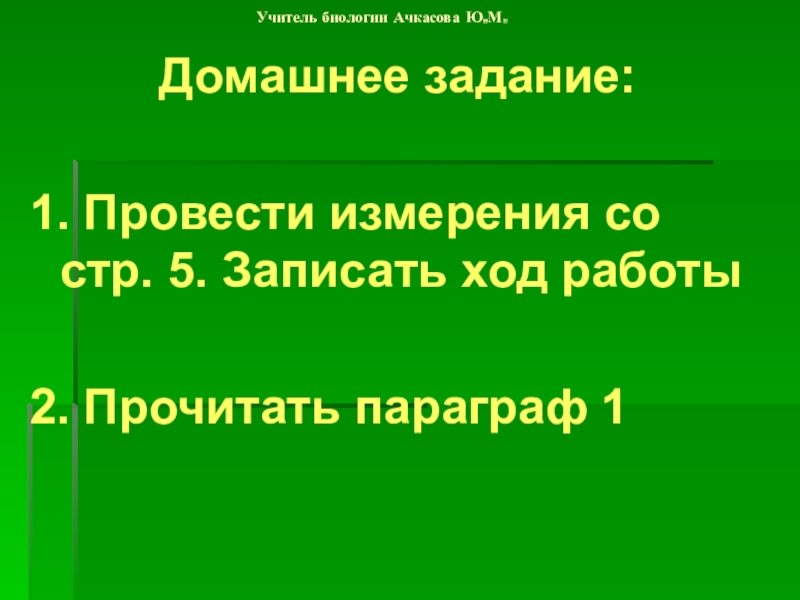 Учитель биологии Ачкасова Юлия Максимовна