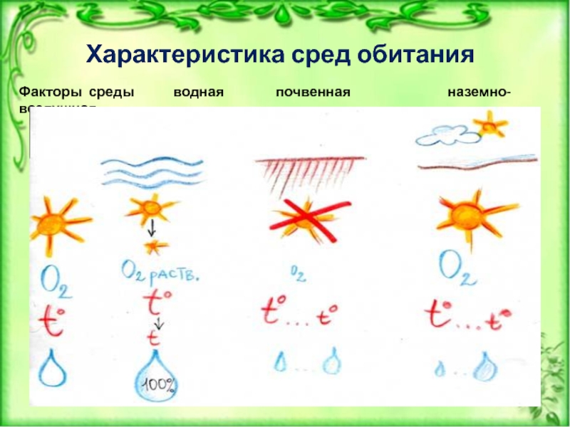 Среды обитанияпочвеннаяводнаяназемно- воздушная