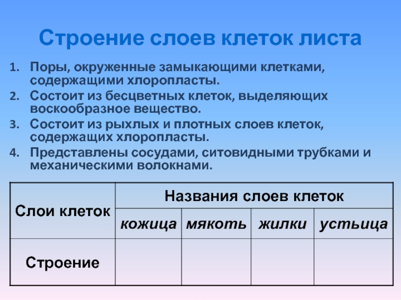 б) кожица листа