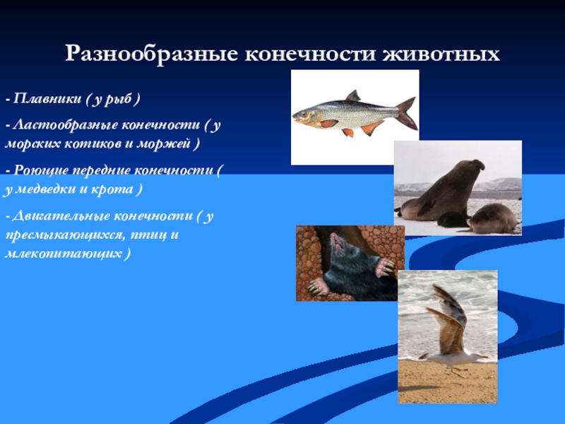 различных средах у животных сформировались разнообразные конечности: