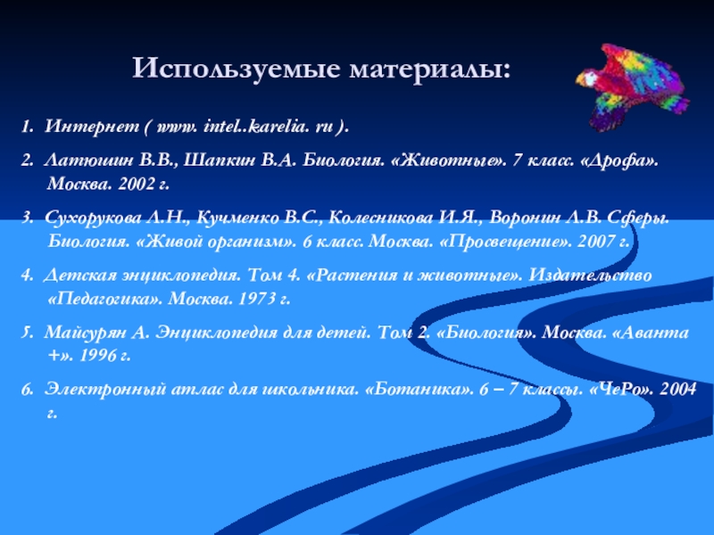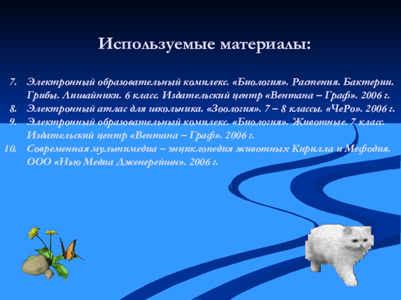 Электронный образовательный комплекс. «Биология». Животные. 7 класс. Издательский центр «Вентана – Граф». 2006 г.