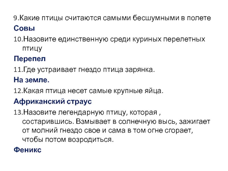 13.Назовите легендарную птицу, которая , состарившись. Взмывает в солнечную высь, зажигает от молний гнездо свое и сама в том огне сгорает, чтобы потом возродиться.