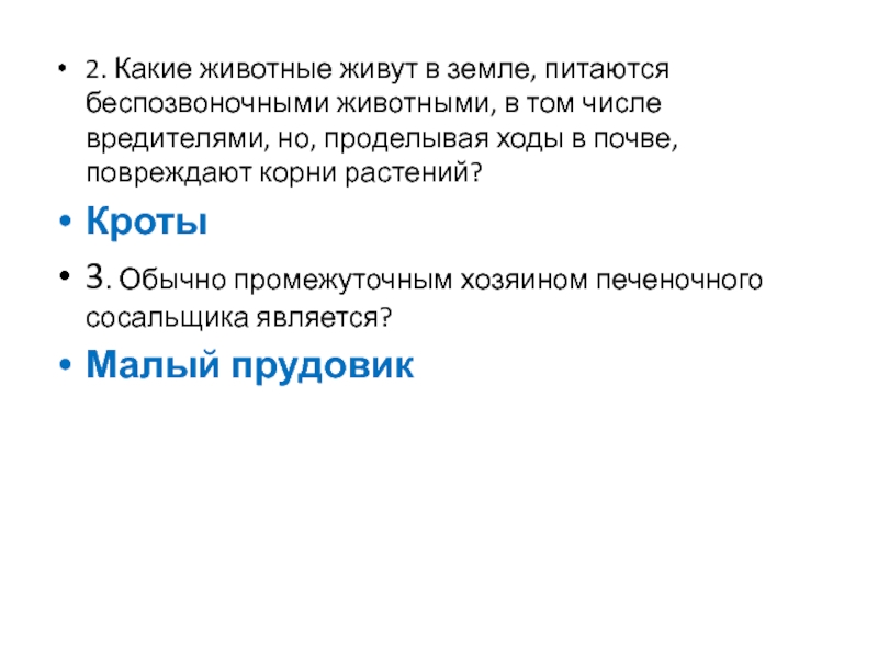 2. Какие животные живут в земле, питаются беспозвоночными животными, в том