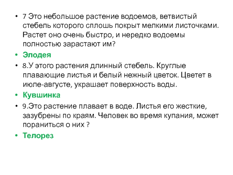 листочками. Растет оно очень быстро, и нередко водоемы полностью зарастают им?