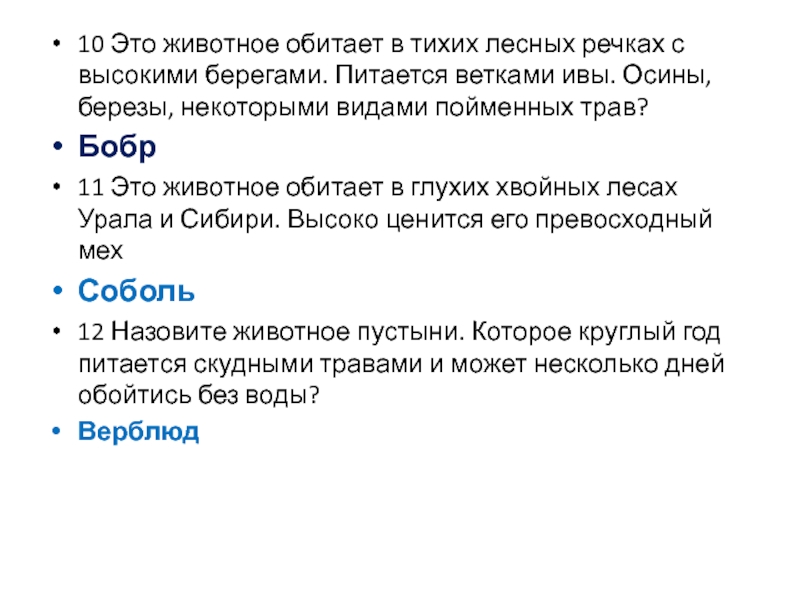 11 Это животное обитает в глухих хвойных лесах Урала и Сибири. Высоко ценится его превосходный мех