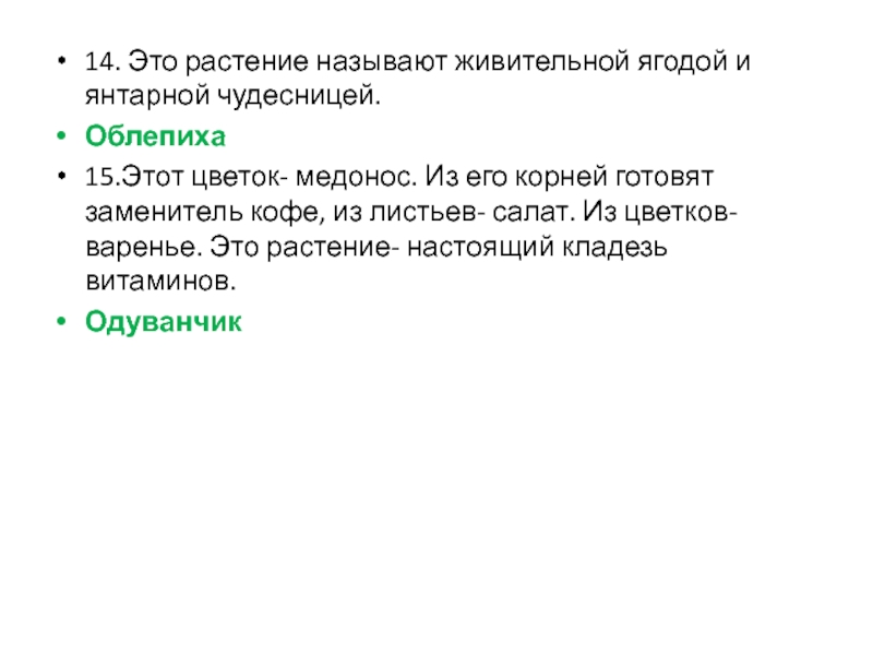 14. Это растение называют живительной ягодой и янтарной чудесницей.