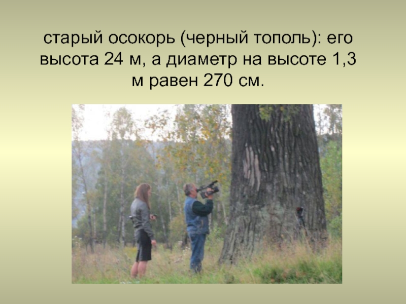 Слайд 36старый осокорь (черный тополь): его высота 24 м, а диаметр на