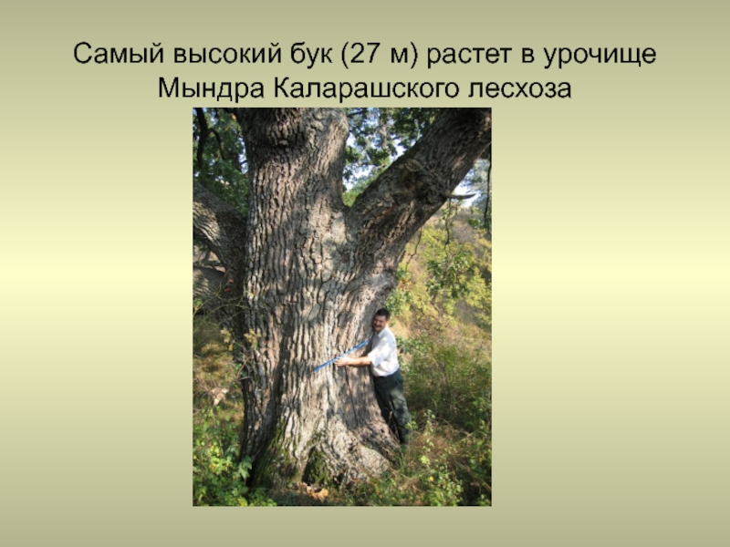 Слайд 32Самый высокий бук (27 м) растет в урочище Мындра Каларашского лесхоза