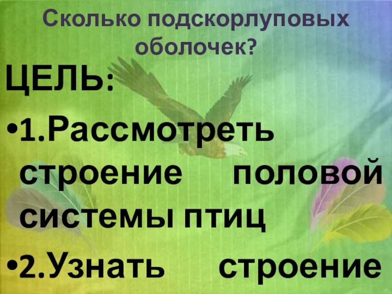 Сколько подскорлуповых оболочек?ЦЕЛЬ:1.Рассмотреть строение половой системы птиц2.Узнать строение яйца