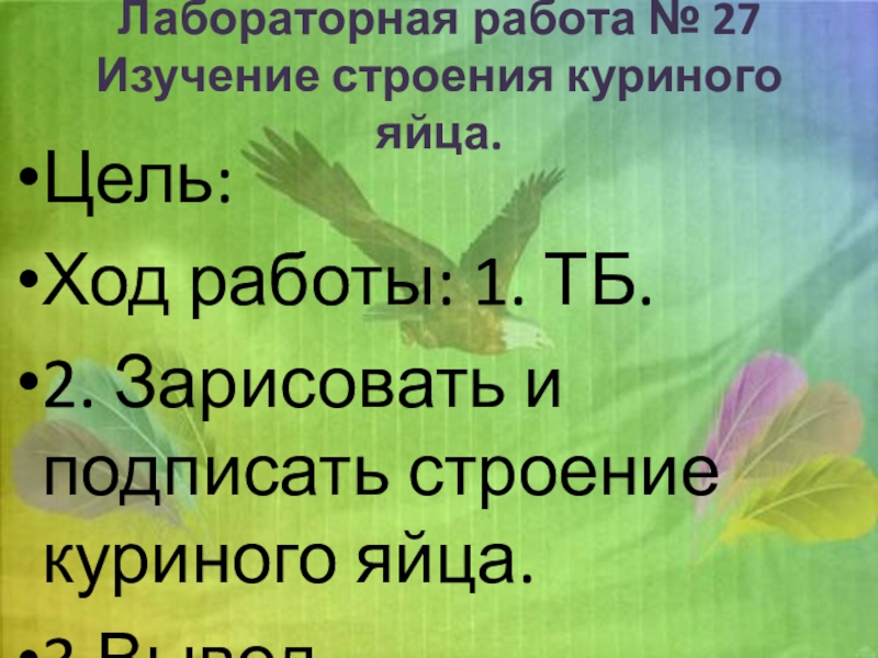 Слайд 9Лабораторная работа № 27 Изучение строения куриного яйца.