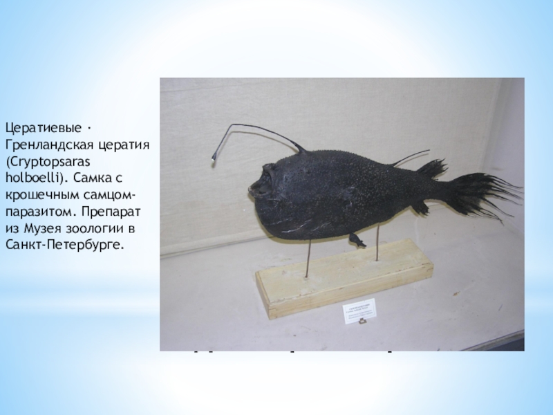Цератиевые · Гренландская цератия (Cryptopsaras holboelli). Самка с крошечным самцом-паразитом.