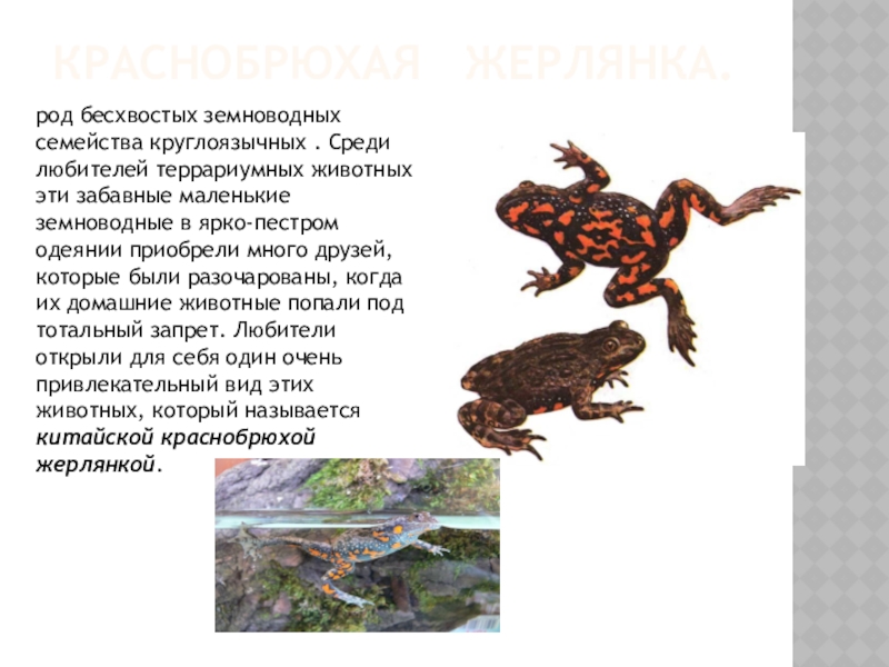 Краснобрюхая  жерлянка.род бесхвостых земноводных семейства круглоязычных . Среди любителей террариумных животных эти забавные маленькие земноводные в