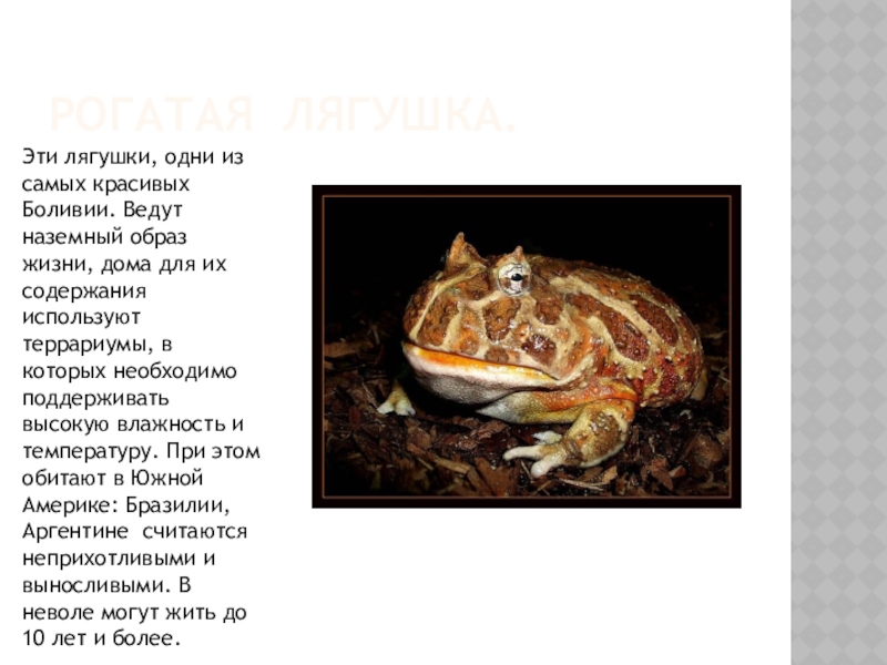 Слайд 3Рогатая лягушка.