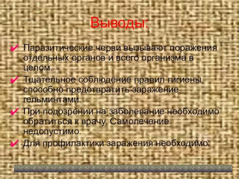 Паразитические черви вызывают поражения отдельных органов и всего организма в целом.