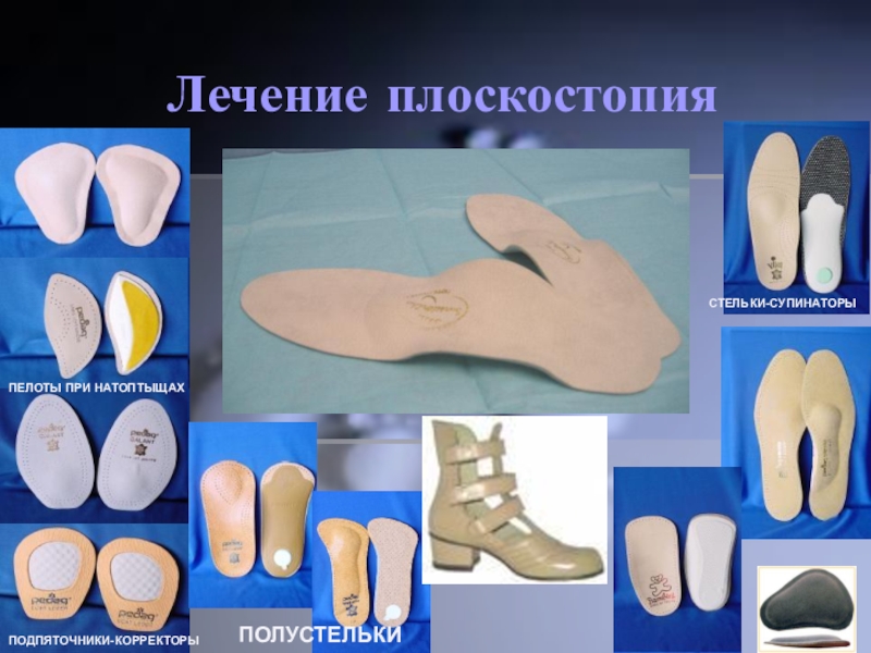 плоскостопия (продольное, поперечное, комбинированное), с соответствующим моделированием продольного, поперечного или обоих сводов
