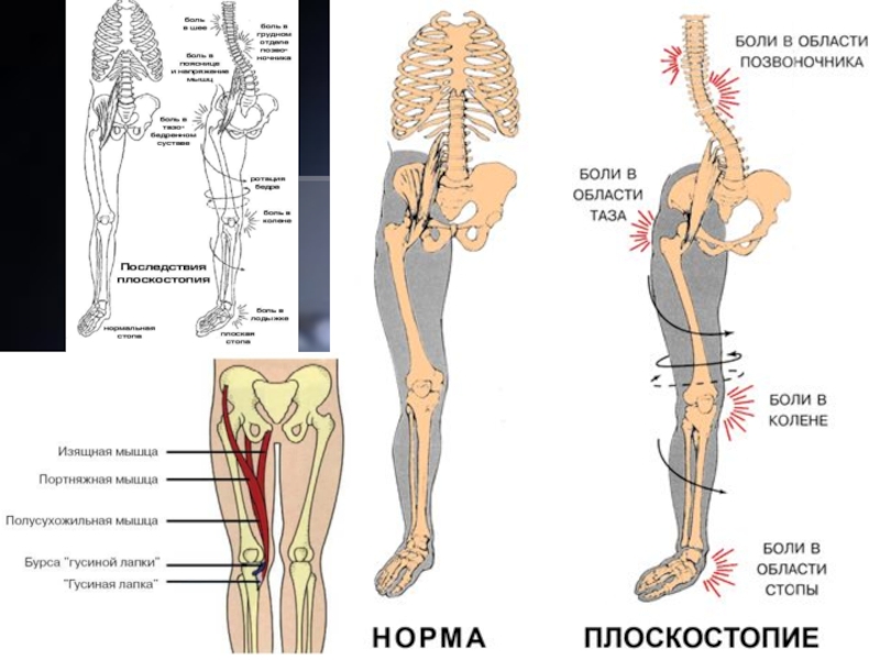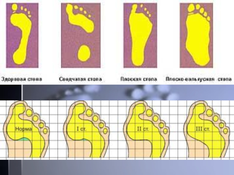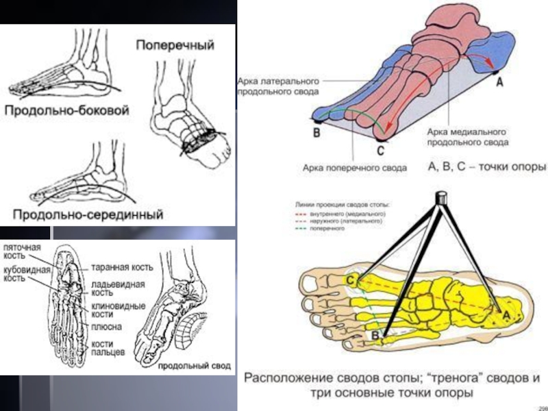 арки формируют продольный свод стопы, а передняя - поперечный. В зависимости от их деформации различают продольное и поперечное плоскостопие