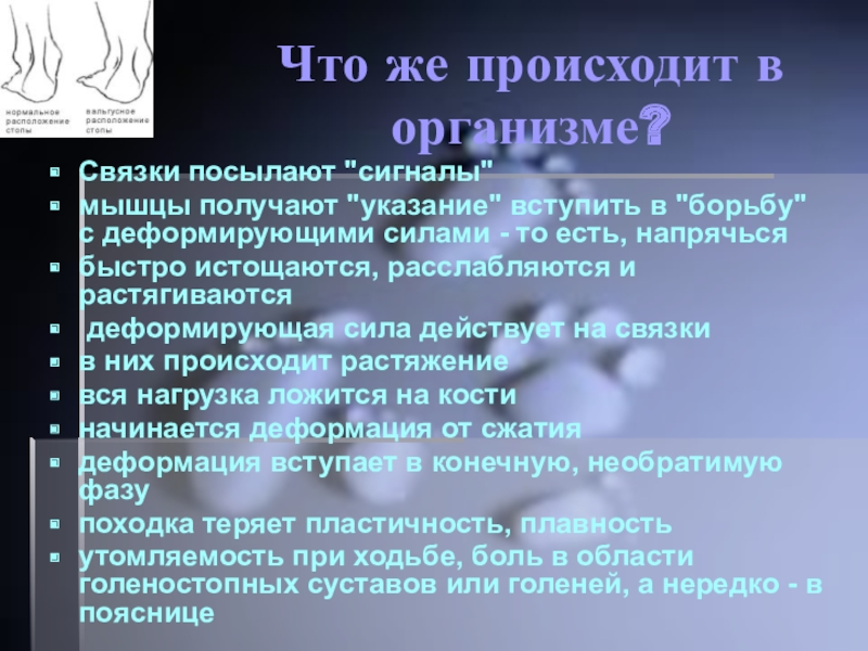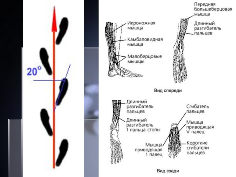 Слайд 5 В норме при динамической нагрузке (ходьба, бег) происходит "перекат" через стопу,