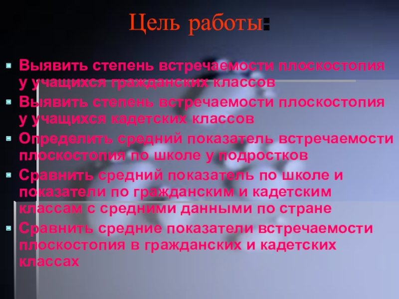 Выявить степень встречаемости плоскостопия у учащихся гражданских классов