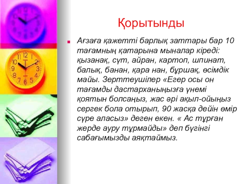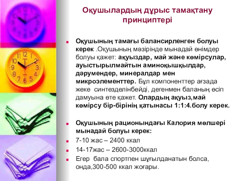 Слайд 11Оқушылардың дұрыс тамақтану принциптері