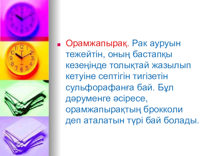 тигізетін сульфорафанға бай. Бұл дәруменге әсіресе, орамжапырақтың брокколи деп аталатын түрі бай болады.
