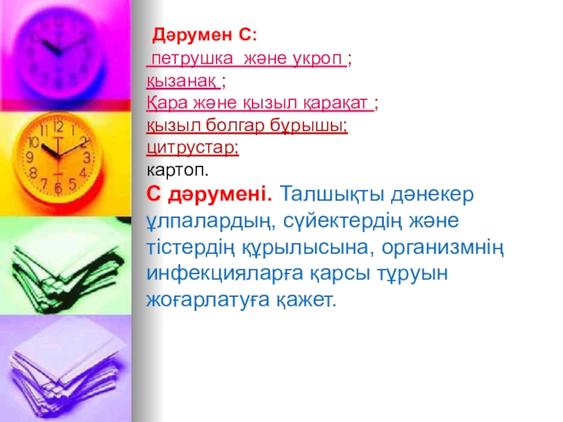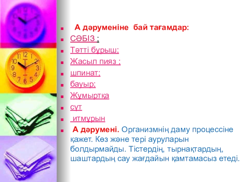 Дәрумендердің маңызы, топтарға бөлінуі, жетіспегенде пайда болатын аурулар туралы