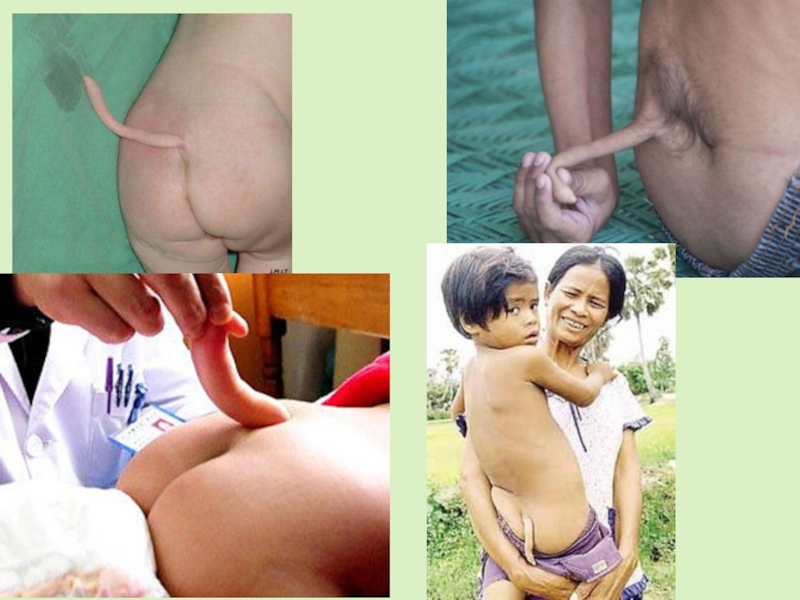У зародыша человека закладываются жаберные щели, сердце в виде рульсирующей трубки, клоака, хвост, пятипузырный головной мозг.