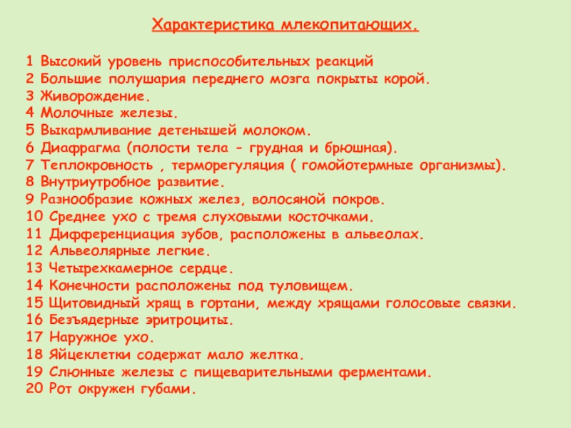 Теплокровность, интенсивный обмен веществ и постоянная температура тела.