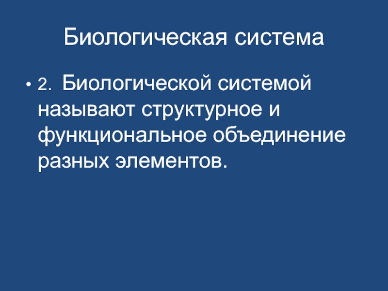 2. Биологической системой называют структурное и функциональное объединение разных элементов.