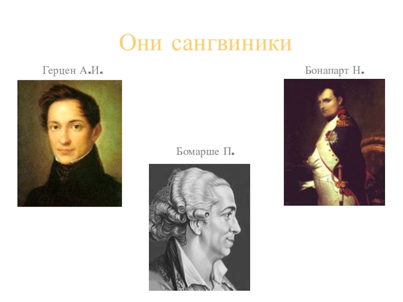 Они сангвиникиБонапарт Н.Герцен А.И.Бомарше П.