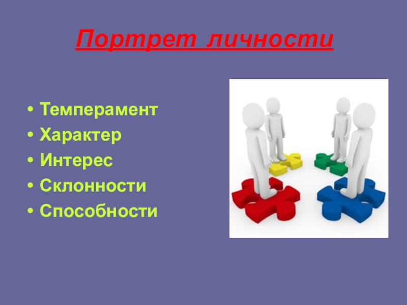 Портрет личностиТемпераментХарактерИнтересСклонностиСпособности