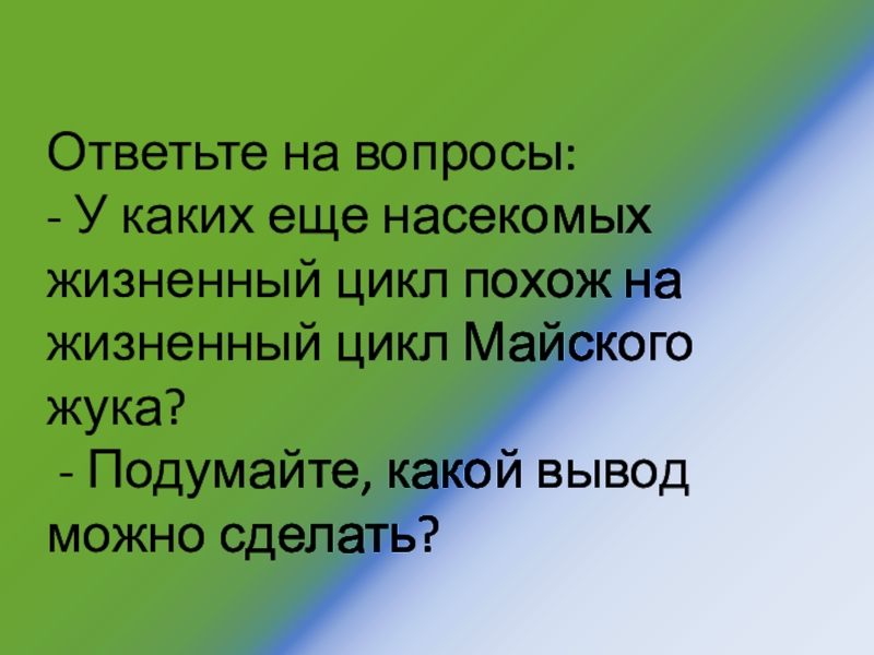 Ответьте на вопросы:  - У каких еще насекомых жизненный цикл похож на жизненный цикл Майского жука?