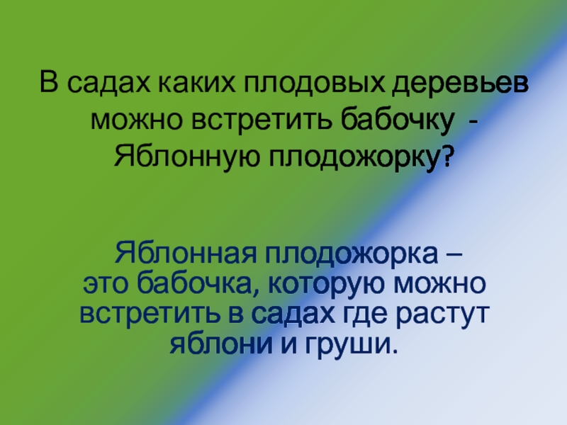 Слайд 2В садах каких плодовых деревьев можно встретить бабочку - Яблонную плодожорку?