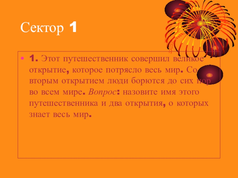Со вторым открытием люди борются до сих пор во всем мире. Вопрос: назовите имя этого путешественника и два открытия, о которых знает весь мир.