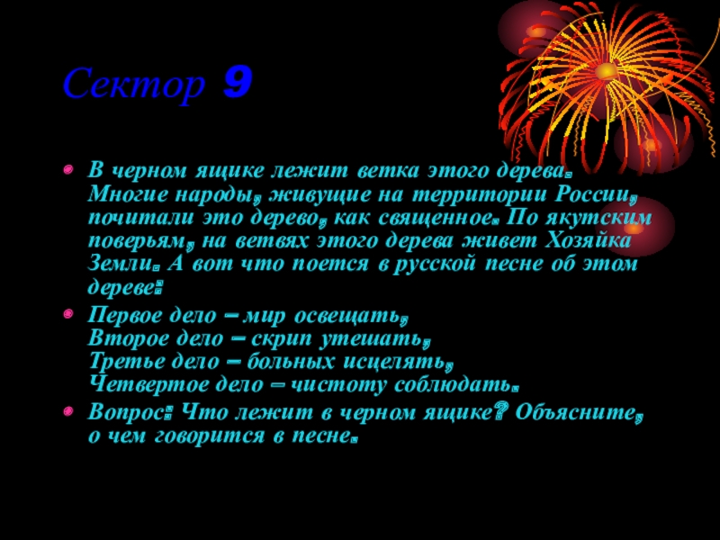 В черном ящике лежит ветка этого дерева. Многие народы, живущие