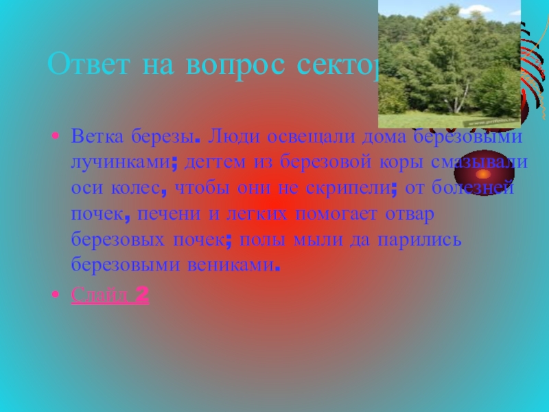 Ветка березы. Люди освещали дома березовыми лучинками;