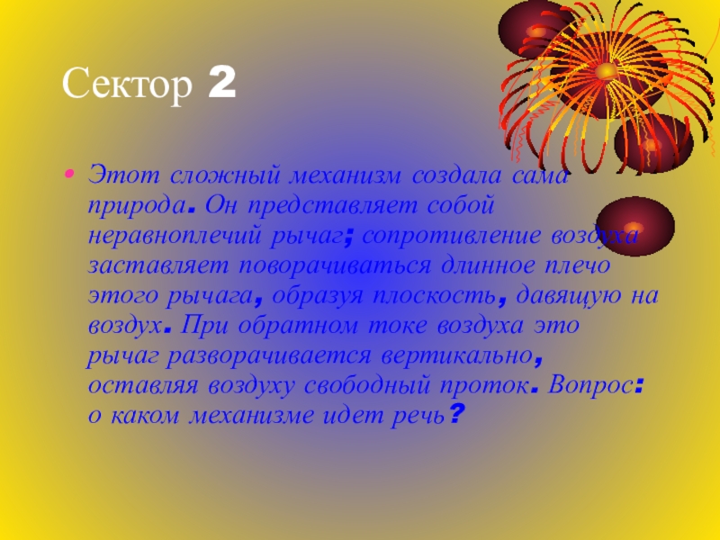 рычаг; сопротивление воздуха заставляет поворачиваться длинное плечо этого рычага, образуя плоскость, давящую на воздух. При обратном токе воздуха это рычаг разворачивается вертикально, оставляя воздуху свободный проток. Вопрос: о каком механизме идет речь?