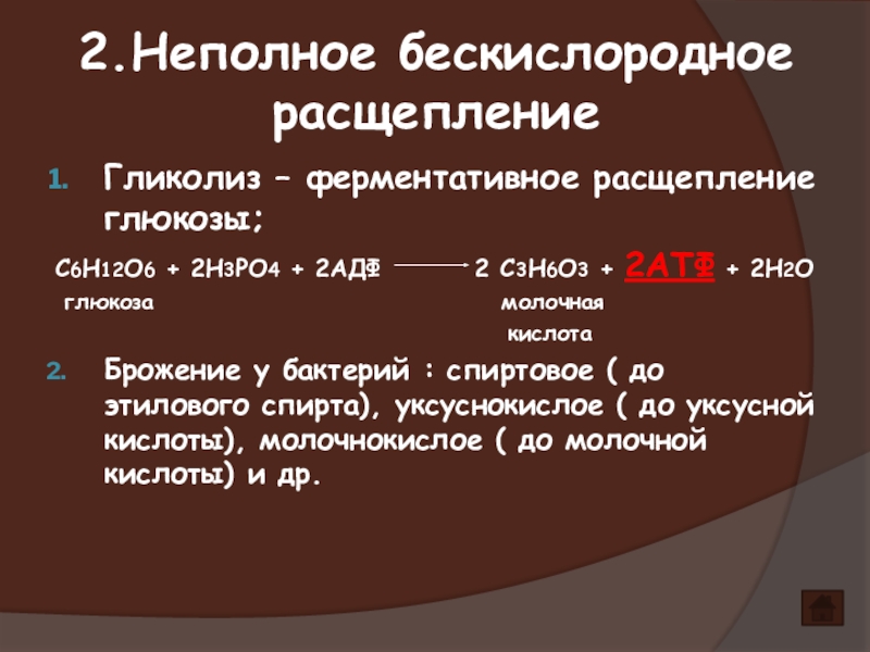Слайд 42.Неполное бескислородное расщепление
