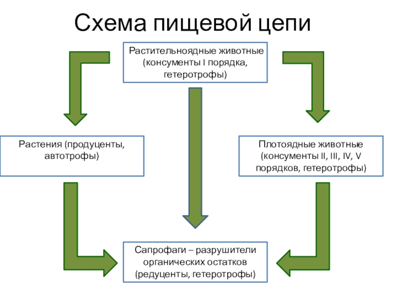 Плотоядные животные (консументы II, III, IV, V порядков, гетеротрофы)