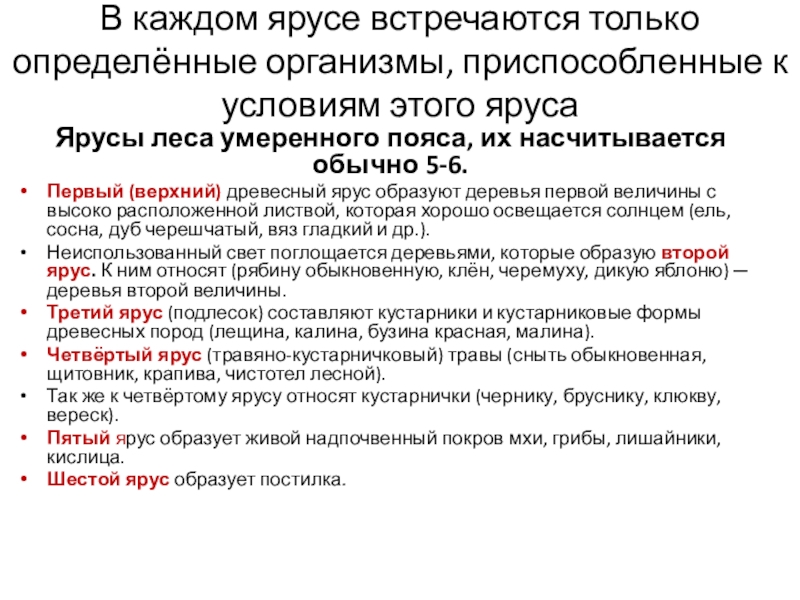 Ярусы леса умеренного пояса, их насчитывается обычно 5-6.